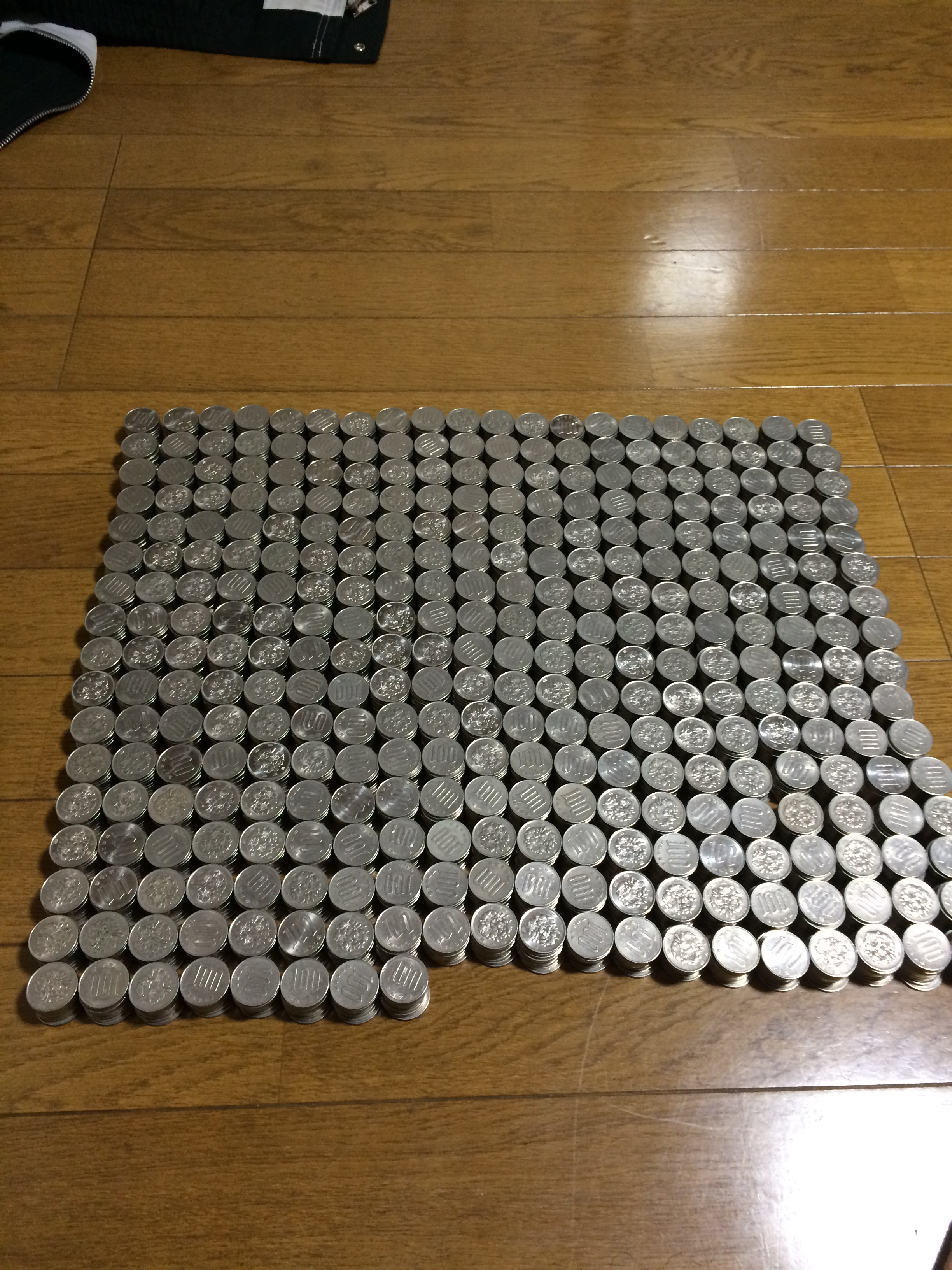 100円玉貯金がある程度の成果になってきて、わりと場所をとって邪魔になってきたので、銀行口座へ入金する為に数えることになりました。
